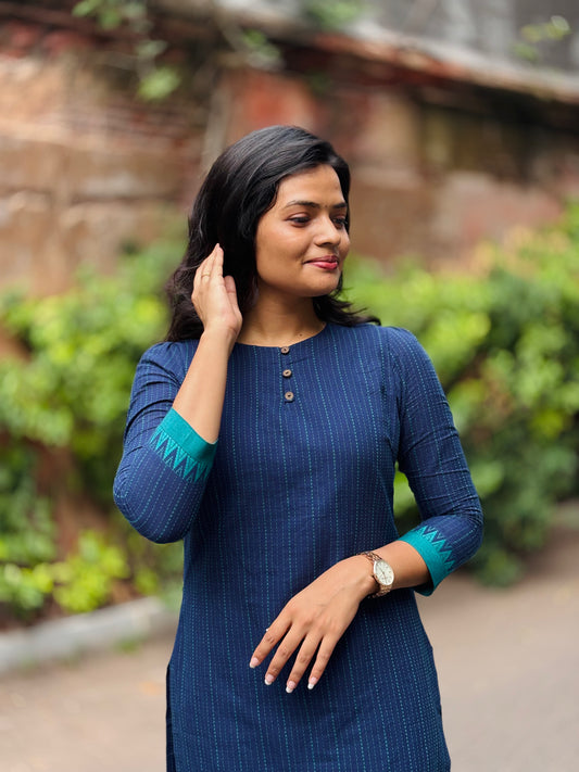 Sridevi - Pure Handloom Cotton Kurti - Navy Blue