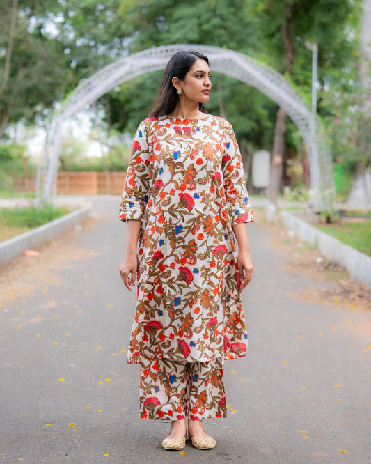 Shreya - Premium Cotton Coord Aline Set - Floral white