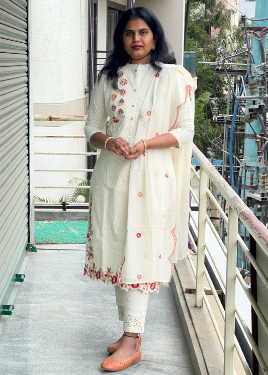Aishwarya - Cotton Shifley embroidered set - Beige