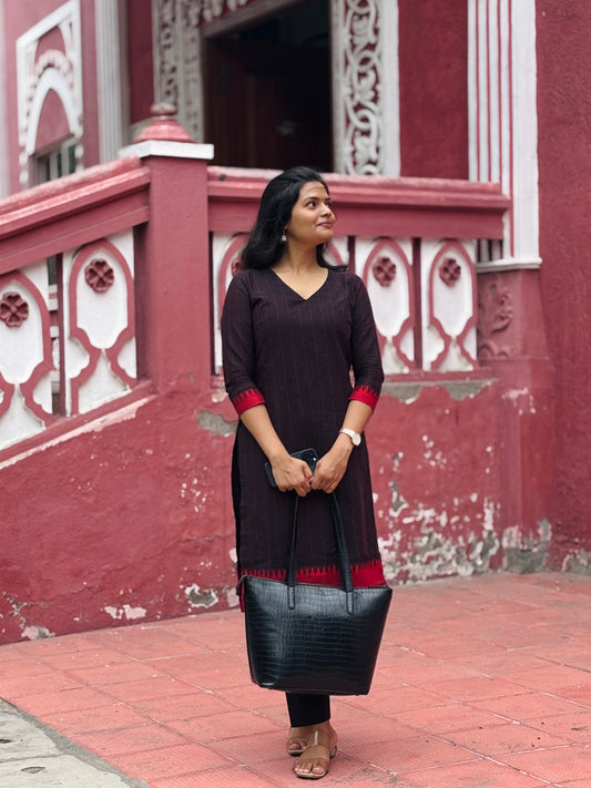 Teena - Pure Handloom Cotton Kurta Set - Black