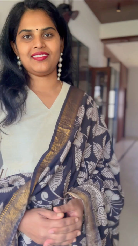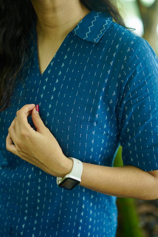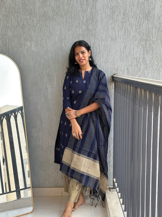 Sridevi - Pure Handloom Cotton Kurti - Navy Blue