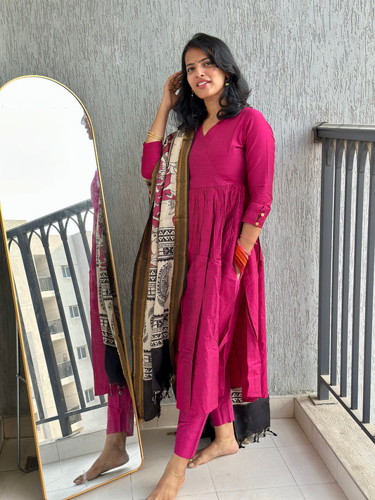 Nayanthara - Silk cotton Weaving Kurta set with dupatta