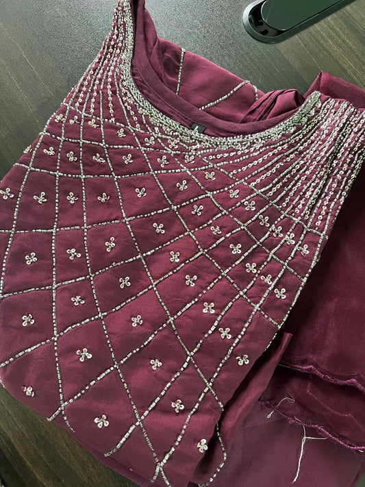 Soundarya - Kota Doria Embroidered Suit - Onion