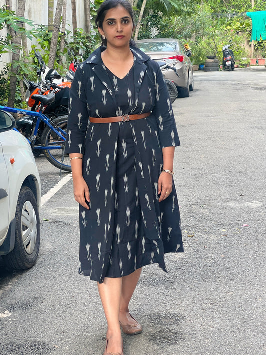 Sridevi - Pure Handloom Cotton Kurti - Navy Blue