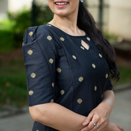 Madhura - Black Silk cotton set with Maslin Dupatta