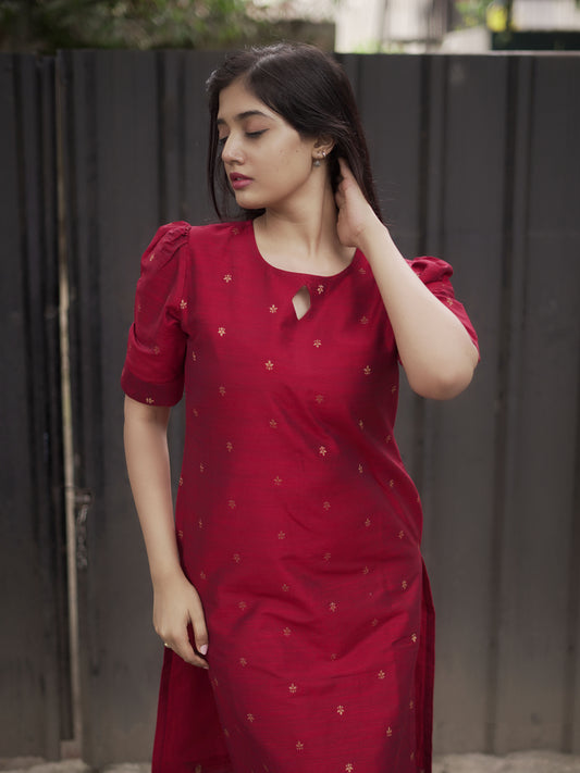 Nandika - Cotton Silk Weave Kurta - Maroon