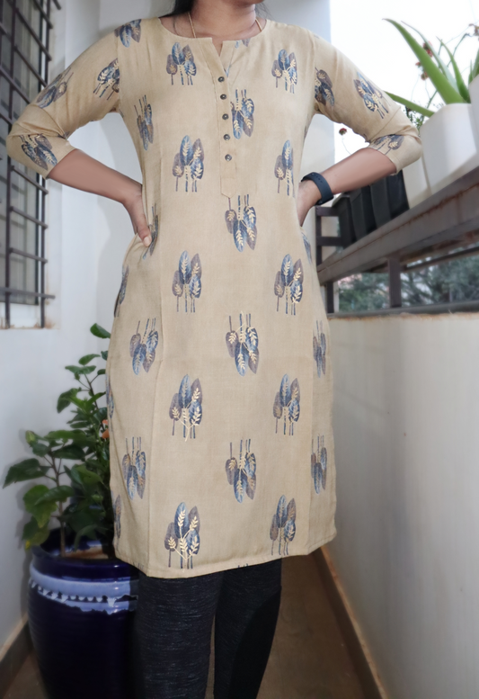 Hamsa - Pure Handloom Cotton Kurti - Beige