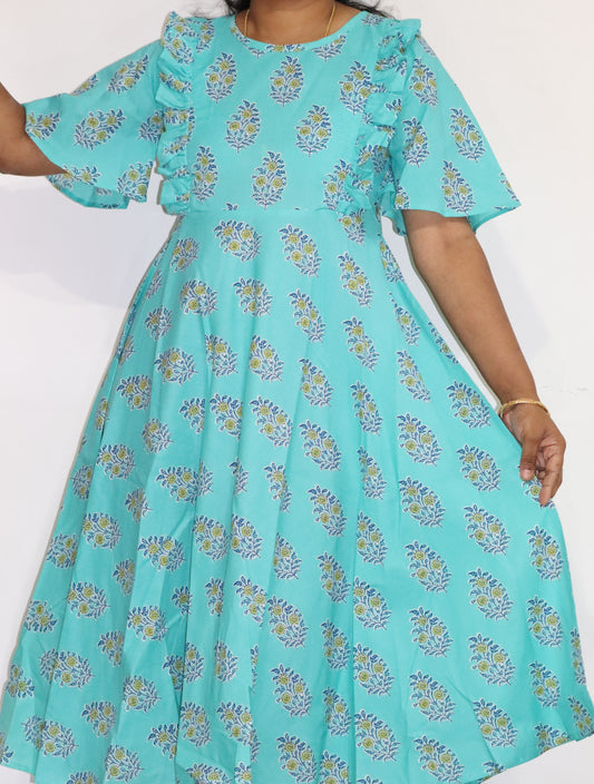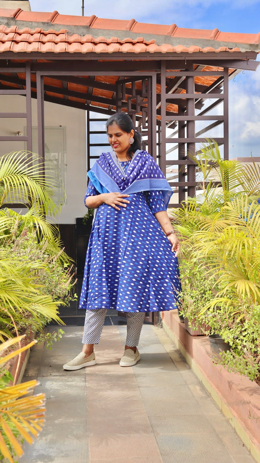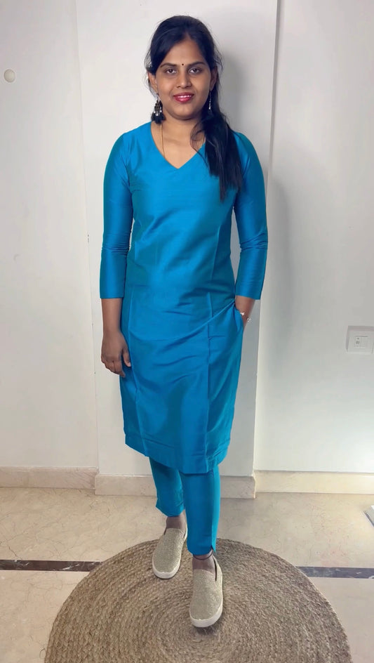 Srinidhi - Silk Cotton Kurta Set - Aqua Blue