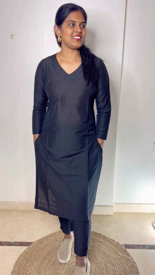 Madhura - Black Silk cotton set with Maslin Dupatta