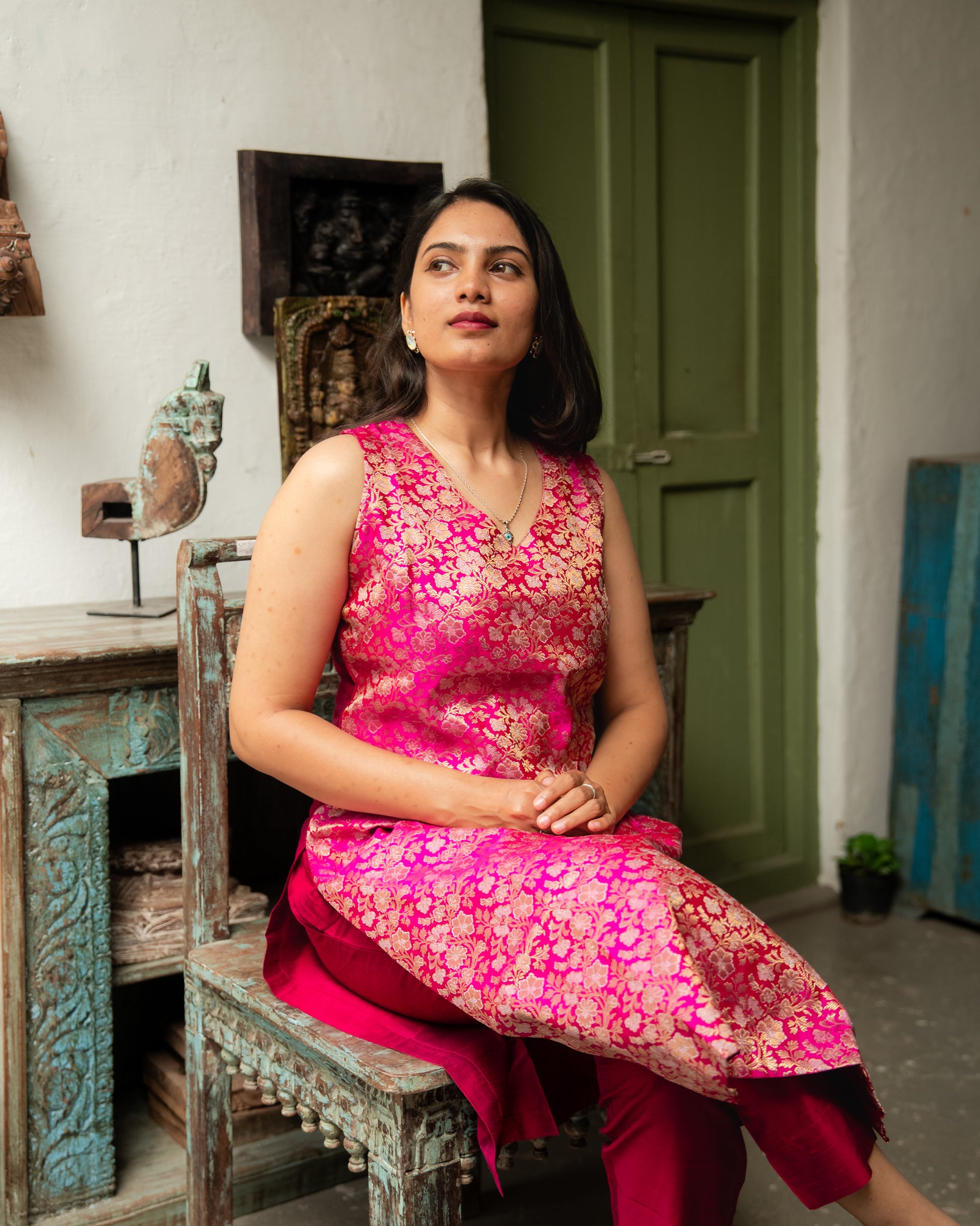 Experience timeless elegance with our Kavya Set crafted in rich Brocade and Silk Cotton. Made for comfort and a flattering silhouette, perfect for festive wear, office, or special occasions.