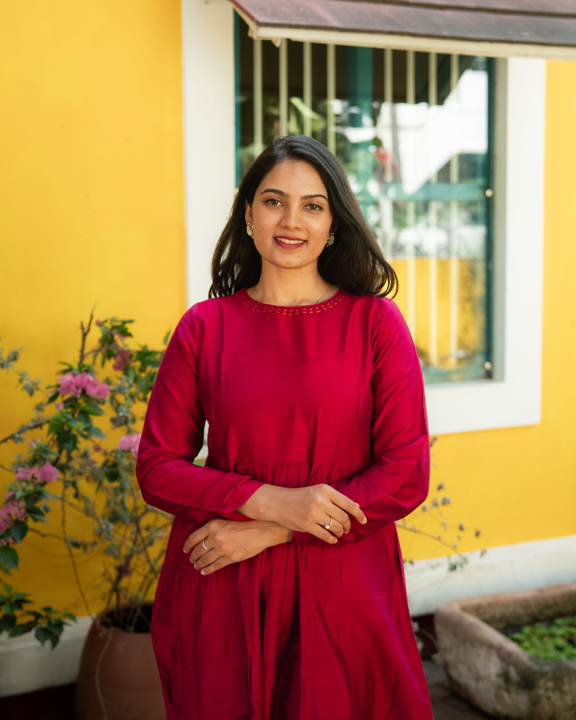 - A-line kurta paired with parallel pants