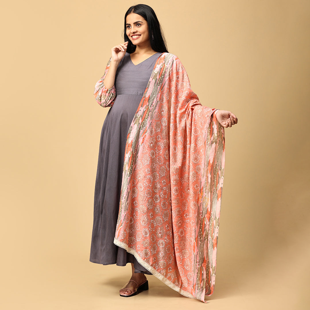 Sundari - Grey silk gown paired with muslin dupatta