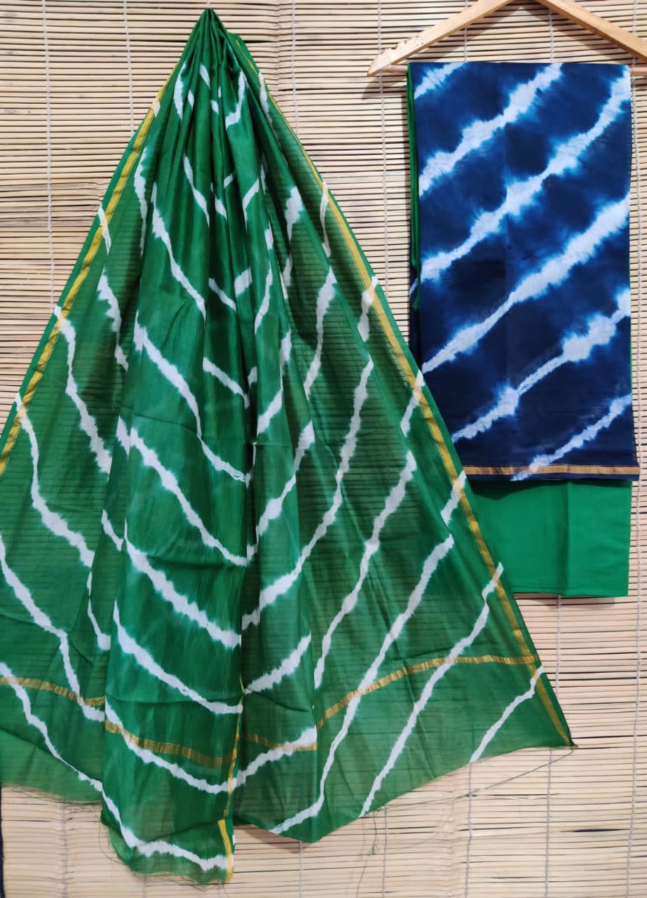 Unstitched Chanderi Block Printed suits - Blue & Green
